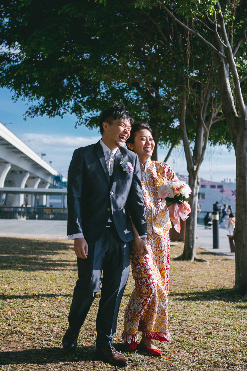 Having the opportunity to get outside for some photographs on your wedding day is always something we recommend. Renee and Nick chose to visit Kwun Tong Promenade in Kwun Tong, New Kowloon. This is a great place to go for photos as it provides greenery as well as being on the waters edge.