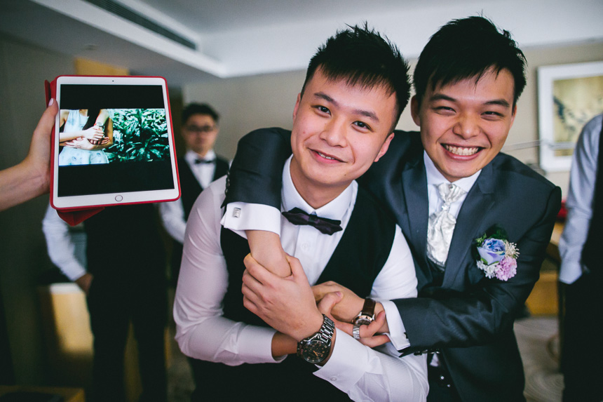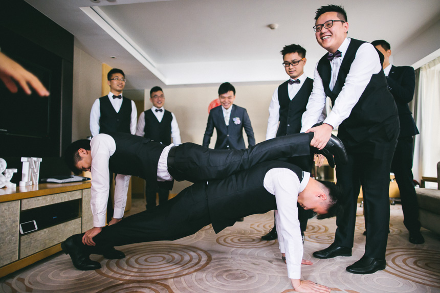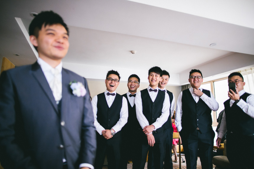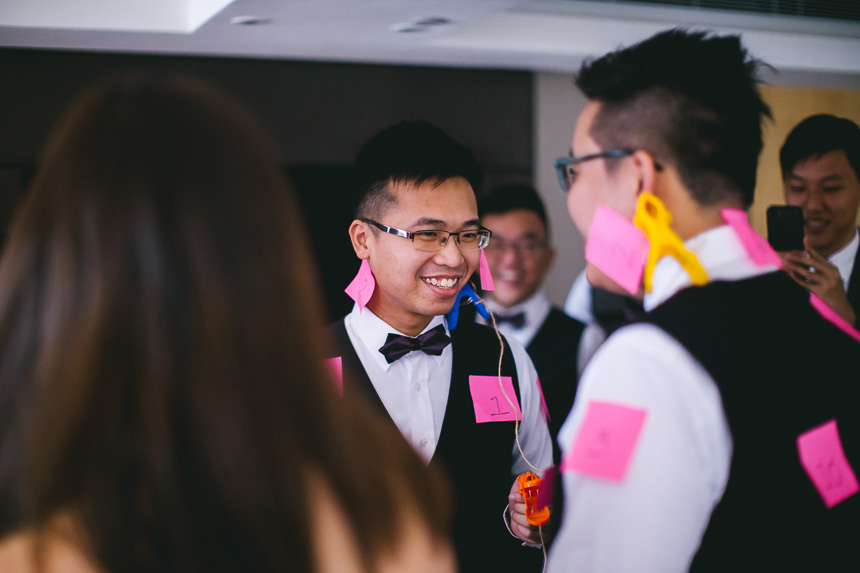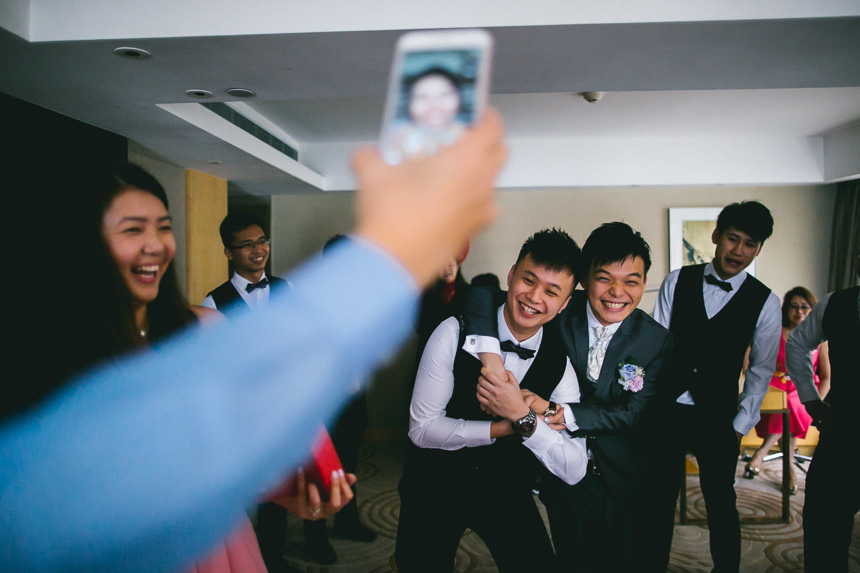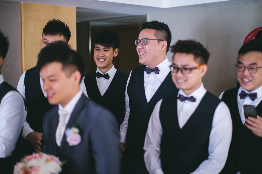 Shortly after Renee was ready Nick arrived at the hotel lobby. The bridesmaids had arranged some fun door games for Nick and his groomsmen. A particularly fun one to capture was of them recreating romantic pre wedding poses. This part of the day always makes for some great documentary photography as every one is having fun and usually can’t stop laughing.